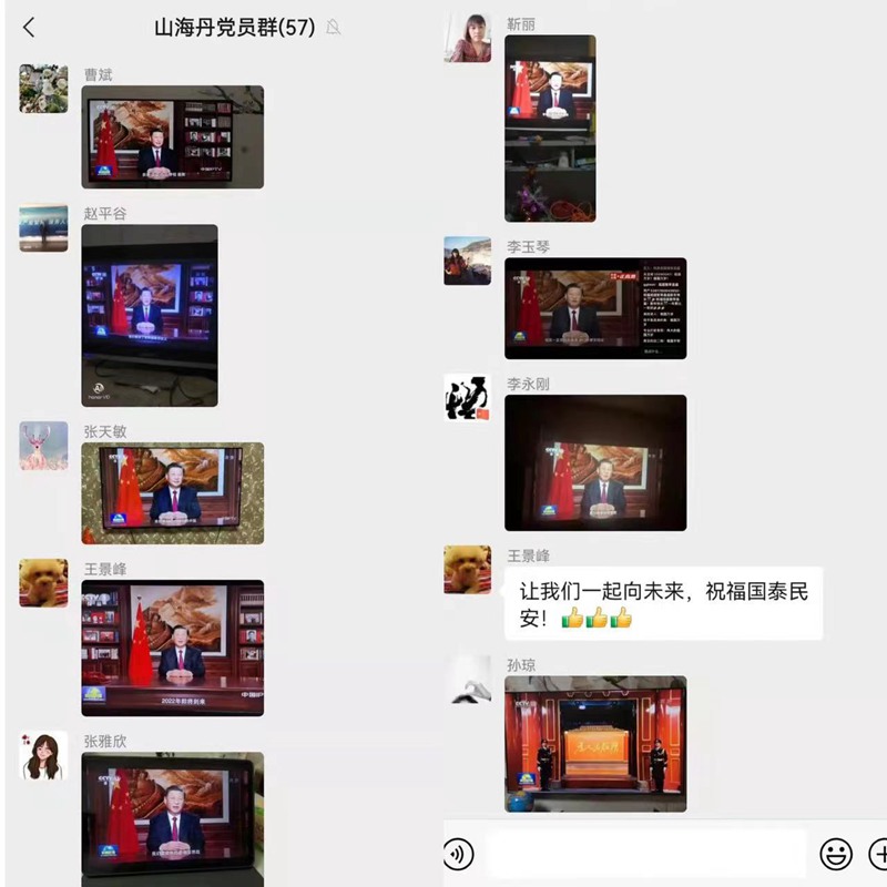 公司接到集團(tuán)通知后,第一時(shí)間迅速部署工作,在山海丹藥業(yè)公司群和黨員群發(fā)出關(guān)于收聽收看國家主席習(xí)近平發(fā)表二〇二二新年賀詞的通知,公司黨委書記王景峰結(jié)合當(dāng)前西安疫情防控形式,提出明確要求:各支部組織好收聽收看,并通過各支部群進(jìn)行學(xué)習(xí)心得交流;深刻領(lǐng)會(huì)新年賀詞的重大意義,進(jìn)一步增強(qiáng)學(xué)習(xí)貫徹的主動(dòng)性、自覺性、堅(jiān)定性,切實(shí)把學(xué)習(xí)貫徹習(xí)近平主席重要講話精神轉(zhuǎn)化為戰(zhàn)勝疫情的強(qiáng)大信心,推動(dòng)山海丹藥業(yè)工作的強(qiáng)大動(dòng)力。 公司黨群工作部及時(shí)與各支部書記、部門負(fù)責(zé)人聯(lián)系溝通,收集各支部、各部門收聽收看后的反響情況。大家紛紛表示:習(xí)主席的賀詞讓大家深受鼓舞,過去的2021年是意義非凡的一年,2021年我們迎來了中國共產(chǎn)黨成立一百周年,迎來第一個(gè)百年目標(biāo)的實(shí)現(xiàn),迎來了“十四五”開局之年,迎來了黨的十九屆六中全會(huì)的勝利召開,抗疫成果舉世矚目,科技進(jìn)步日新月異,綜合實(shí)力迅猛提升,大國地位更加突顯……這些成就更加提振了信心,更加堅(jiān)定了聽黨話,跟黨走,堅(jiān)決做到“兩個(gè)維護(hù)”的思想自覺。當(dāng)前,來勢洶洶的新冠疫情仍在肆虐著我們的城市,習(xí)總書記的新年賀詞猶如一支強(qiáng)心劑,更加堅(jiān)定了我們戰(zhàn)勝疫情的信心和決心。2021年的最后一天,山海丹的志愿者們依然堅(jiān)守在抗疫一線,踐行著偉大的抗疫精神,這正是貫徹習(xí)近平主席新年賀詞精神的生動(dòng)寫照。