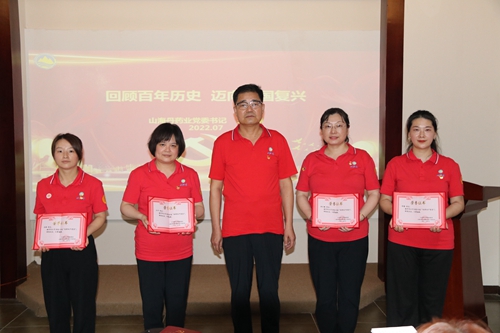 公司黨委舉行了“兩優(yōu)一先”表彰獎(jiǎng)勵(lì),新發(fā)展黨員代表田廣莉做了表態(tài)發(fā)言,表示將珍惜榮譽(yù)、當(dāng)擔(dān)作為、履職盡責(zé)、廉潔從業(yè)、模范表率。公司黨委書(shū)記王景峰講授了“回顧百年歷史、邁向強(qiáng)國(guó)復(fù)興”主題黨課,從“什么是中國(guó)共產(chǎn)黨、中國(guó)共產(chǎn)黨干什么”,“革命理想高于天”,“百年風(fēng)華、人民史詩(shī)”,“忘我無(wú)畏 持續(xù)奮斗”,“人間正道,天下為公”,“不負(fù)韶華、砥礪前行”六個(gè)方面回顧了黨的百年偉大歷史成就,解讀了百年大黨的成功密碼。號(hào)召公司全體黨員干部、員工要更加緊密地團(tuán)結(jié)在以習(xí)近平同志為核心的黨中央周?chē),?jiān)持以習(xí)近平新時(shí)代中國(guó)特色社會(huì)主義思想為指導(dǎo),按照省十四次黨代會(huì)精神要求,全面貫徹落實(shí)習(xí)近平總書(shū)記三次來(lái)陜考察重要講話重要指示和黨中央決策部署,大力弘揚(yáng)偉大建黨精神和延安精神,解放思想、改革創(chuàng)新、再接再厲,在公司上半年取得“雙過(guò)半”成績(jī)基礎(chǔ)上,以時(shí)不我待的精神,帶頭學(xué)習(xí)、增強(qiáng)本領(lǐng),錨定全年目標(biāo),艱苦奮斗、不懈奮斗,不負(fù)韶華,心無(wú)旁騖、負(fù)重前行,用心干、扎實(shí)干、少說(shuō)多干,用實(shí)干實(shí)績(jī)體現(xiàn)對(duì)黨和人民的忠誠(chéng),確!皟煞(wěn)一!惫ぷ髟鷮(shí)落實(shí),以優(yōu)異成績(jī)向黨的二十大獻(xiàn)禮,為實(shí)現(xiàn)中華民族偉大復(fù)興中國(guó)夢(mèng)而努力奮斗!