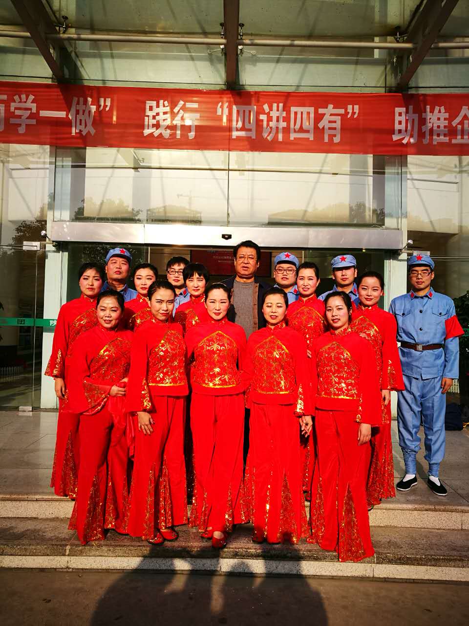 公司黨委書記、董事長劉如斌與表演人員合影 |