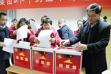與會(huì)人員對(duì)述職人員進(jìn)行民主測(cè)評(píng),投下神圣的一票