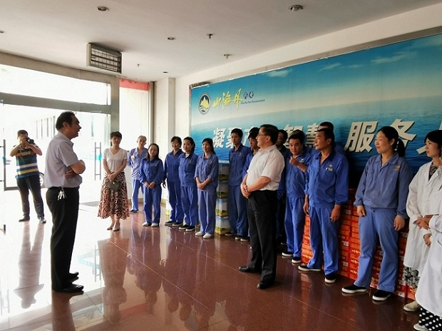 盛夏到來,酷暑難耐。集團公司情系一線員工,6月26日,陜藥集團公司工會主席李俊、群眾工作部主任哈南等一行3人來到山海丹藥業(yè),開展“送清涼”慰問活動,為一線員工帶來綠豆、冰糖、菊花、綠茶、花露水、沐浴露、王老吉等降溫物資129份,把絲絲清涼和濃濃情義送到員工手中。李主席感謝大家的辛勤勞動,并與現(xiàn)場員工親切交流,了解大家的工作和生活情況,叮囑大家務(wù)必做好防暑降溫工作,注意人身安全。
